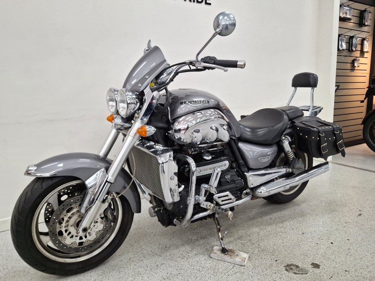 The ultimate power cruiser^^The Triumph Rocket III has defined a unique niche in the clone-like performance cruiser market where it sits in a class of its own thanks to its striking looks, stunning performance and incredible specification. At 2294cc it?s the world?s largest capacity production motorcycle in its day. But, despite the impressive capacity of this amazing machine, it was designed first and foremost to be ridden. A good turning circle, seamless fuel injection and a low center of gravity combine to make manoeuvring at low speed surprisingly easy.With up to a 3 year mechanical protection plan and the most competitive finance and insurance packages available, as Australia?s largest motorcycle retailer no one makes it easier to purchase a used Motorcycle. Plus we can organise to have your bike delivered directly to your door anywhere in Australia through our dedicated motorcycle freighters. Why buy elsewhere?