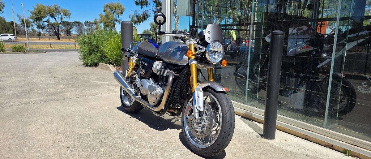 Grab a load of this silver bullet riding machine. What more could you ask for with a Thruxton R, this thing goes as quick as it looks. The Thruxton offers a slightly leant over positioning being the racer style and in true Triumph fashion offers a sleek design with a retro feel. Enquire Now!^With the option to add a 3 year mechanical protection plan and the most competitive finance and insurance packages available, as Australia's largest motorcycle retailer no one makes it easier to purchase a used Motorcycle. Plus we can organise to have your bike delivered directly to your door anywhere in Australia through our dedicated motorcycle freighters. This Approved Used Bike comes with a 49-Point Quality Inspection, 2-Day FREE Exchange and ensuring peace of mind, ease & convenience. An Approved Used Bike is the best choice in Australia for your next bike. Why buy elsewhere?