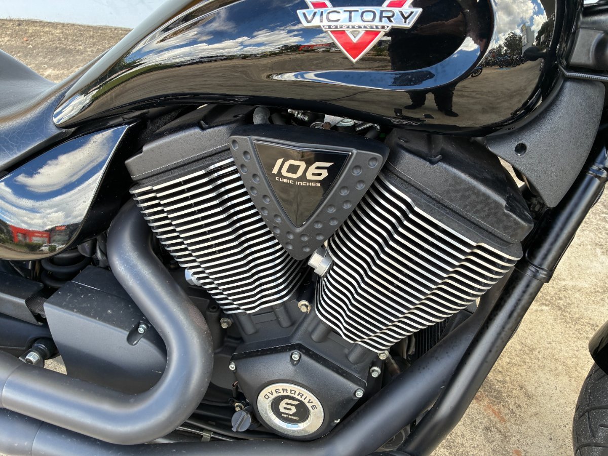 For sale: a 2016 Victory Hammer 8 Ball, one-owner from new and showing only 18,000 km. This bike presents beautifully with its fully blacked out finish and unmistakable muscle bike stance. It comes fitted with Big Radius pipes that deliver an incredible sound and really complete the look. The bike has been kept exceptionally clean and tidy, clearly cared for, and is ready for its next rider to enjoy. A rare chance to own a stunning example of Victory's iconic Hammer 8 Ball.